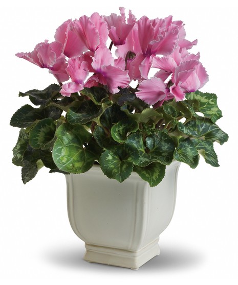 The Cyclamen plant is a beautiful flowering plant that continues to flower throughout the year. Ceramic container may be different to photo for delivery.