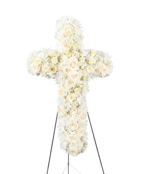 Let the Pure White Cross from City Line Florist symbolize your love, respect, and unwavering support during times of loss. It is a beautiful and dignified tribute that will be remembered and appreciated by all who see it.